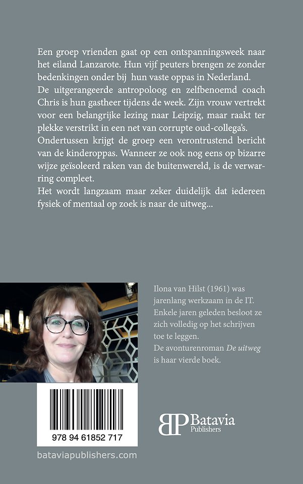 Ilona van Hilst (1961) was jarenlang werkzaam in de IT. Enkele jaren geleden besloot ze zich volledig op het schrijven toe te leggen. De avonturenroman De uitweg is haar vierde boek.