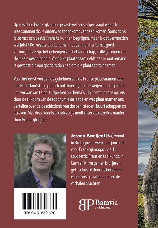 Jeroen Sweijen (1974) woont in Bretagne en werkt als journalist voor Frankrijkmagazines. Hij studeerde Frans en taalkunde in Caen en Nijmegen en is al jaren gefascineerd door de herkomst van Franse plaatsnamen en de verhalen erachter.