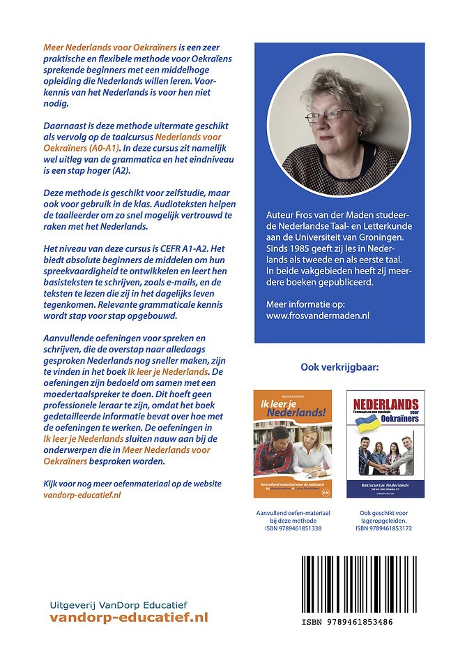 Meer Nederlands voor Oekraïners is een zeer praktische en flexibele methode voor Oekraïens sprekende beginners met een middelhoge opleiding die Nederlands willen leren. Voorkennis van het Nederlands is voor hen niet