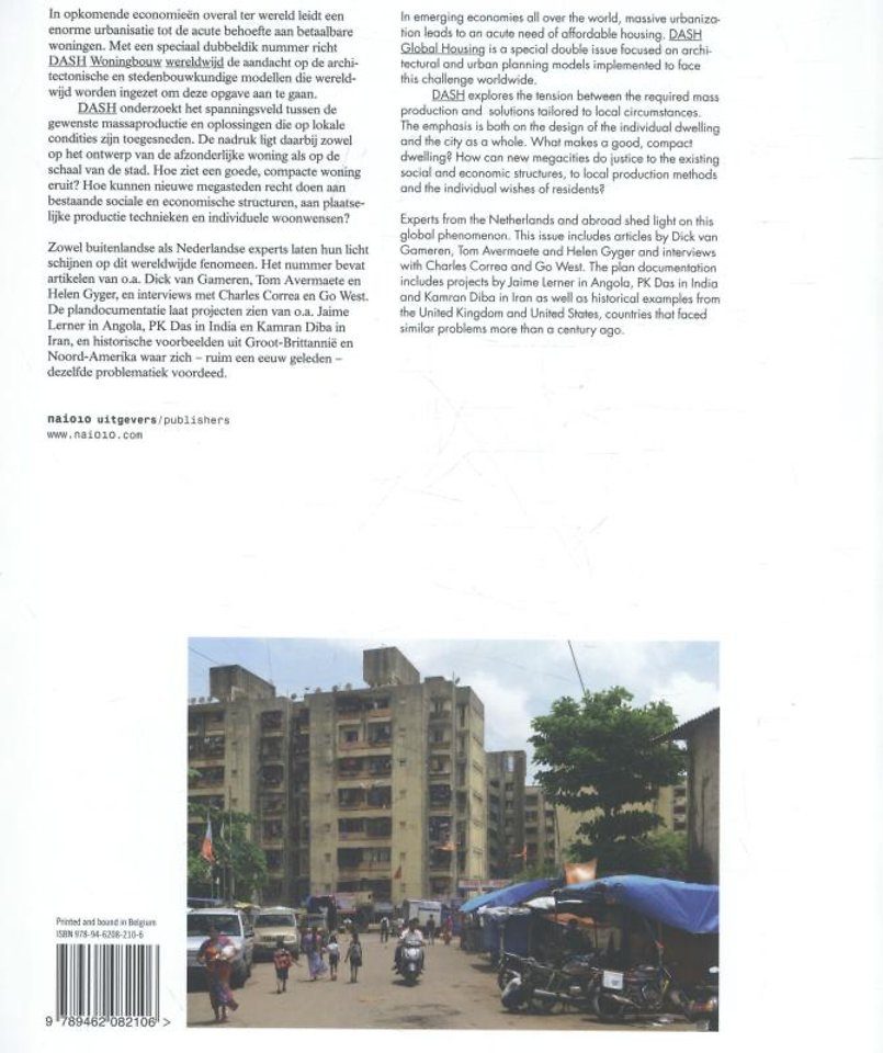 DASH Woningbouw wereldwijd onderzoekt het spanningsveld tussen de gewenste massaproductie en oplossingen die op lokale condities zijn toegesneden. Hoe kunnen nieuwe megasteden recht doen aan bestaande sociale en economische structuren, aan plaatselijke productietechnieken en individuele woonwensen? Wat is de standaard en wat is het ideaal? DASH Woningbouw wereldwijd bevat essays van o.a. Tom Avermaete en Nelson Mota, en interviews met Balkrishna Doshi en Go West. De plandocumentatie laat projecten zien van o.a. Charles Correa, Elemental en Hassan Fathy.