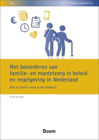 In tijden van vergrijzing en toenemende financiële en personele druk op de verzorgingsstaat wordt familie- en mantelzorg steeds belangrijker. In dit boek onderzoekt gepromoveerd jurist Femke de Kievit de fundamentele vraag hoe in het overheidsbeleid en regelgeving familie- en mantelzorg bevorderd worden en gaat zij op zoek naar verbeterpunten op dat vlak. Haar multidimensionale en rechtsgebied overstijgende onderzoek brengt voor het eerst de juridische wereld rondom familie- en mantelzorg uitgebreid in kaart en betrekt daarbij het zorgbeleid en de praktijk van familie- en mantelzorg.