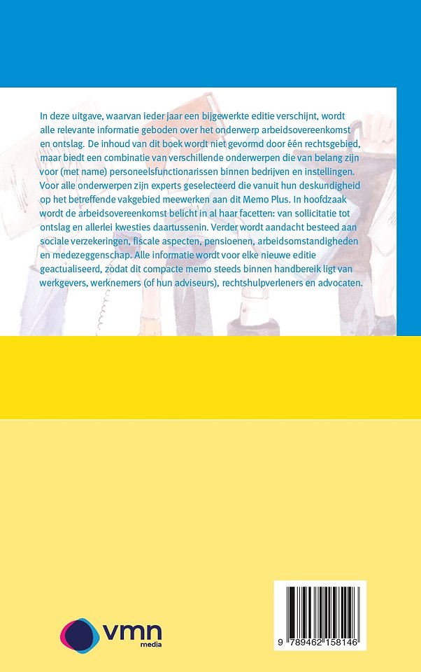 Voor alle onderwerpen zijn experts geselecteerd die vanuit hun deskundigheid op het betreffende vakgebied meewerken aan dit Memo Plus. In hoofdzaak wordt de arbeidsovereenkomst belicht in al haar facetten: van sollicitatie tot ontslag en allerlei kwesties daartussenin.