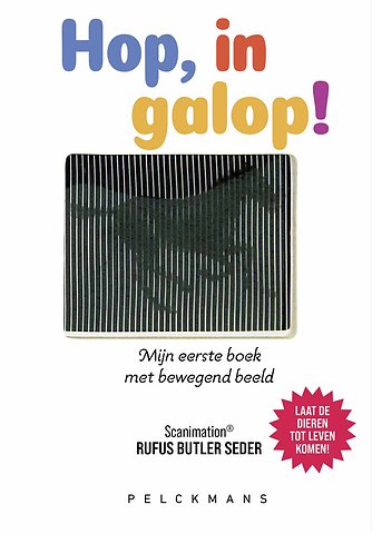 Hop, in galop! van Rufus Butler Seder is een uniek kartonboek dat dieren tot leven wekt. Dankzij de verbluffende Scanimation-techniek komen de dieren echt tot leven; een paard lijkt echt te galopperen, een hond te rennen en een adelaar te zweven door de lucht – gewoon door de bladzijde om te slaan. De illustraties worden aangevuld met een tekst op rijm. Het is onmogelijk om de pagina niet om te slaan, en nog eens, en nog eens, en nog eens.