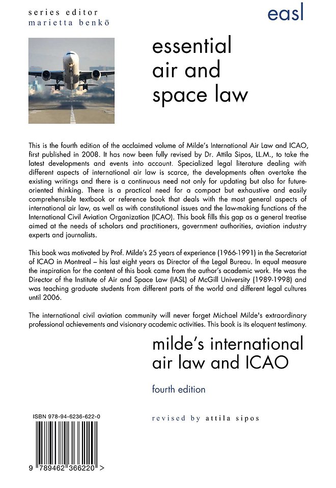 This is the fourth edition of the acclaimed volume of Milde’s International Air Law and ICAO, first published in 2008. It has now been fully revised by Dr. Attila Sipos, LL.M., to take the latest developments and events into account. Specialized legal literature dealing with different aspects of international air law is scarce, the developments often overtake the existing writings and there is a continuous need not only for updating but also for futureoriented thinking. There is a practical need for a compact but exhaustive and easily comprehensible textbook or reference book that deals with the most general aspects of international air law, as well as with constitutional issues and the law-making functions of the International Civil Aviation Organization (ICAO). This book fills this gap as a general treatise aimed at the needs of scholars and practitioners, government authorities, aviation industry experts and journalists.