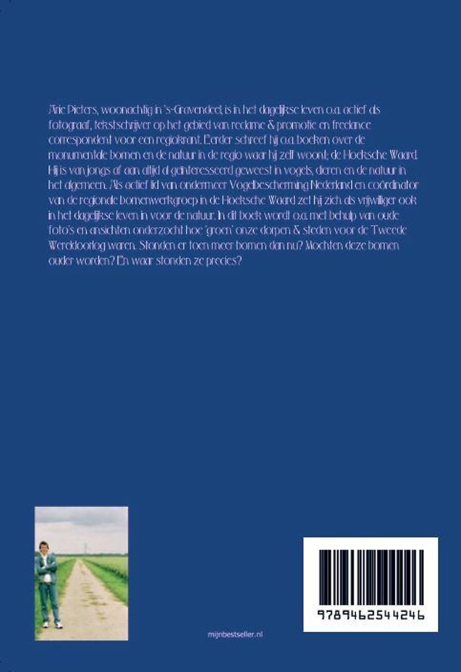 Arie Pieters, woonachtig in 's-Gravendeel, is in het dagelijkse leven o.a. actief als fotograaf, tekstschrijver op het gebied van reclame & promotie en freelance correspondent voor een regiokrant. Eerder schreef hij o.a. boeken over de monumentale bomen en de natuur in de regio waar hij zelf woont; de Hoeksche Waard. Hij is van jongs af aan altijd al geïnteresseerd geweest in vogels, dieren en de natuur in het algemeen. Als actief lid van ondermeer Vogelbescherming Nederland en coördinator van de regionale bomenwerkgroep in de Hoeksche Waard zet hij zich als vrijwilliger ook in het dagelijkse leven in voor de natuur. In dit boek wordt o.a. met behulp van oude foto's en ansichten onderzocht hoe 'groen' onze dorpen & steden voor de Tweede Wereldoorlog waren. Stonden er toen meer bomen dan nu? Mochten deze bomen ouder worden? En waar stonden ze precies?