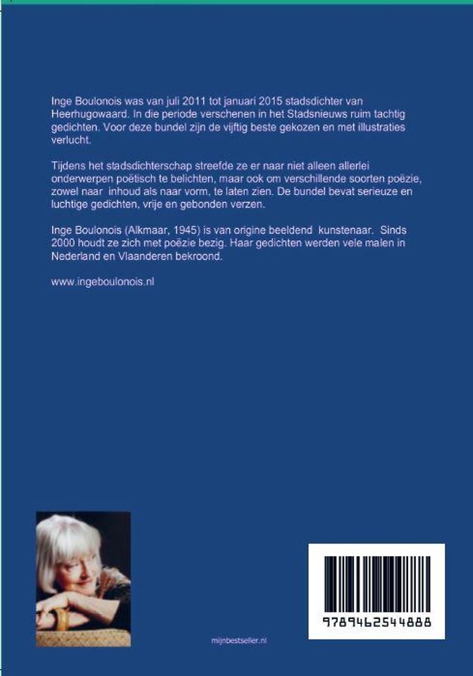 Inge Boulonois was van juli 2011 tot januari 2015 stadsdichter van Heerhugowaard. In die periode verschenen in het Stadsnieuws ruim tachtig gedichten. Voor deze bundel zijn de vijftig beste gekozen en met illustraties verlucht.