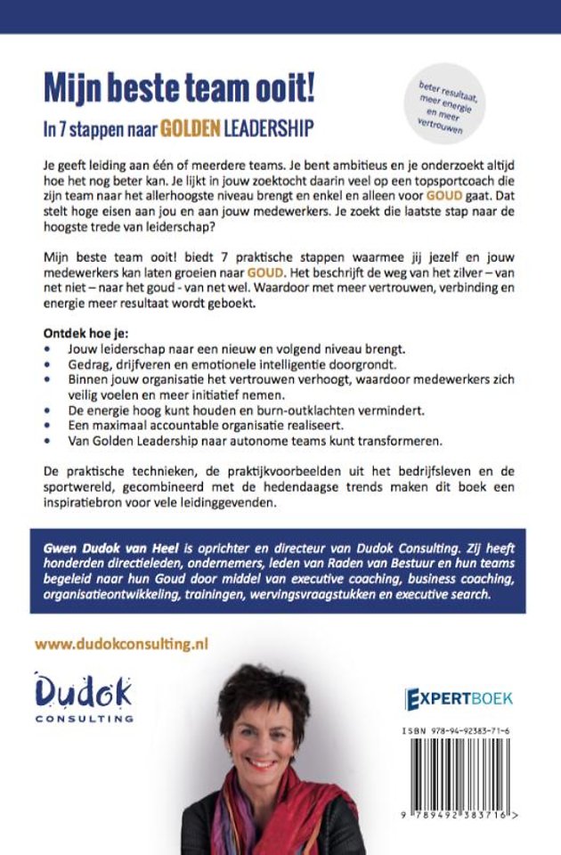 Mijn beste team ooit! biedt 7 praktische stappen waarmee jij jezelf en jouw medewerkers kan laten groeien naar GOUD. Het beschrijft de weg van het zilver – van net niet – naar het goud - van net wel. Waardoor met meer vertrouwen, verbinding en energie meer resultaat wordt geboekt.