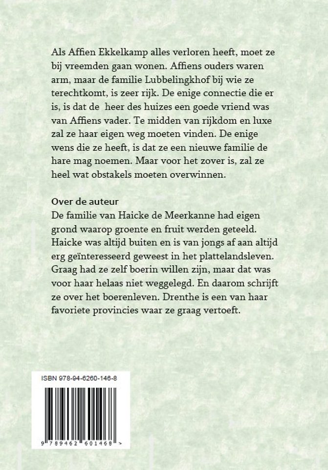 Als Affien Ekkelkamp alles verloren is, moet ze bij vreemden gaan wonen. Affiens ouders waren arm, maar de familie Lubbelingkhof bij wie ze terechtkomt, is zeer rijk. De enige connectie die er is, is dat de heer des huizes een goede vriend was van Affiens vader. Te midden van rijkdom en luxe zal ze haar eigen weg moeten vinden. De enige wens die ze heeft, is dat ze een nieuwe familie de hare mag noemen. Maar voor het zover is, zal ze heel wat obstakels moeten overwinnen.