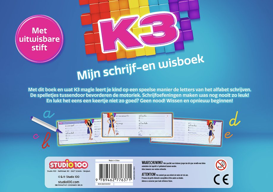 Met dit boek en wat K3 magie leer je op een leuke manier schrijven. Schrijfoefeningen waren nog nooit zo leuk! En lukt het eens een keertje niet zo goed? Geen nood! Wissen en opnieuw beginnen!
