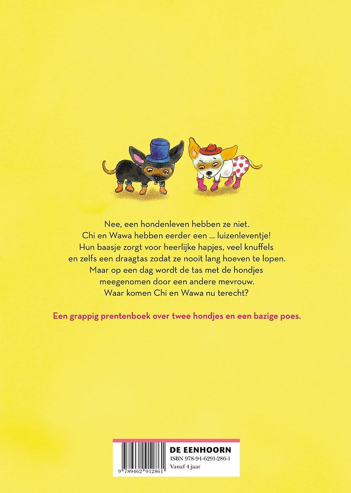 Chi en Wawa komen niets tekort. Hun baasje zorgt voor heerlijke hapjes, veel knuffels en zelfs een draagtas zodat ze nooit lang hoeven te lopen. Maar op een dag wordt hun tas meegenomen door een andere mevrouw. En Chi en Wawa zitten er nog in ... Ze komen terecht in het huis van meneer Poes. Die vindt Chi en Wawa erg leuk speelgoed.