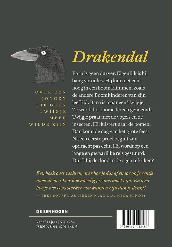 Barn is geen durver. Eigenlijk is hij bang van alles. Hij kan niet eens hoog in een boom klimmen, zoals de andere Boomkinderen van zijn leeftijd. Barn is maar een ‘twijgje’. Zo wordt hij ook door iedereen genoemd. Twijgje heeft wel iets met bijen. Hij durft er als enige de honing te halen. Hij praat ook met de vogels en de insecten. Dan komt de dag van het grote feest. Twijgje wordt op een lange en gevaarlijke reis gestuurd. Durft hij zijn angst in de ogen te kijken?