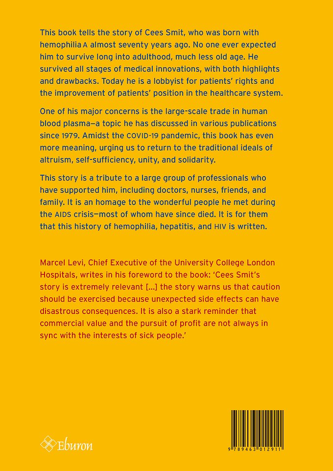 This book tells the story of Cees Smit, who was born with hemophilia A almost seventy years ago. No one ever expected him to survive long into adulthood, much less old age. He survived all stages of medical innovations, with both highlights and drawbacks. Today he is a lobbyist for patients’ rights and the improvement of patients’ position in the healthcare system.