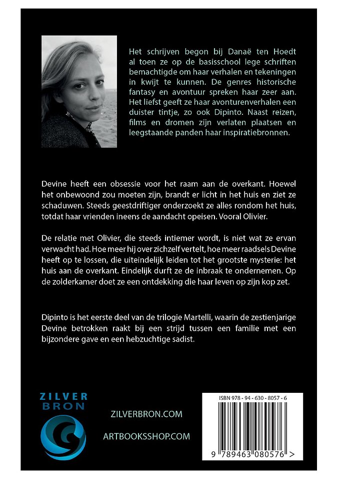 Dipinto is het eerste deel van de trilogie Martelli, waarin de zestienjarige Devine betrokken raakt bij een strijd tussen een familie met een bijzondere gave en een hebzuchtige sadist.
