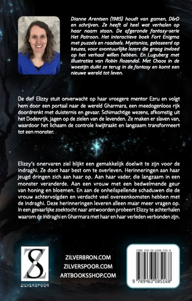 Elizzy's onervaren ziel blijkt een gemakkelijk doelwit te zijn voor de indraghi. Ze doet haar best om te overleven. Herinneringen aan haar jeugd dringen zich aan haar op. Aan haar vader, die langzaam in een monster veranderde. Aan een vrouw met een bedwelmende geur van honing en bloemen. En aan de onheilspellende schaduwen die de vrouw achtervolgden en verdacht veel overeenkomsten hebben met de indraghi. Deze herinneringen leveren alleen maar meer vragen op. In een gevaarlijke zoektocht naar antwoorden probeert Elizzy te achterhalen waarom de indraghi en Gharmara met haar en haar verleden verbonden zijn.