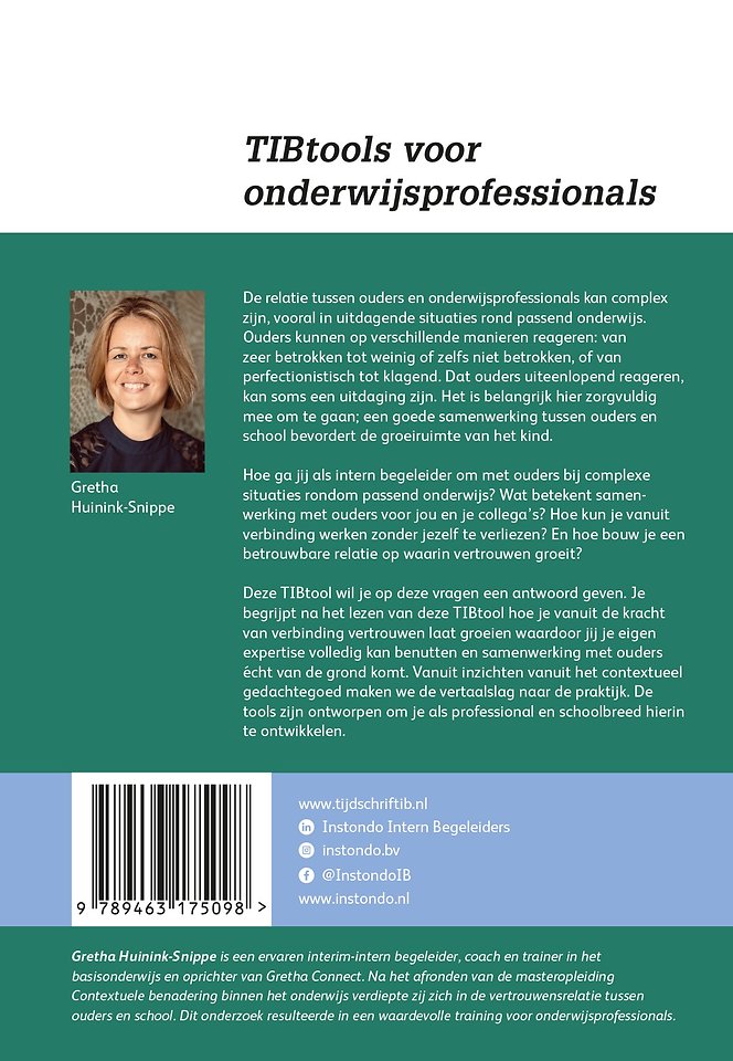 Deze TIBtool wil je op deze vragen een antwoord geven. Je begrijpt na het lezen van deze TIBtool hoe je vanuit de kracht van verbinding vertrouwen laat groeien waardoor jij je eigen expertise volledig kan benutten en samenwerking met ouders écht van de grond komt. Vanuit inzichten vanuit het contextueel gedachtegoed maken we de vertaalslag naar de praktijk. De tools zijn ontworpen om je als professional en schoolbreed hierin te ontwikkelen.