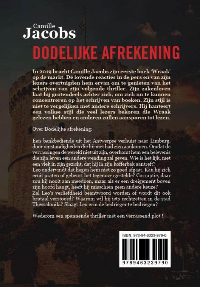 In 2019 bracht Camille Jacobs zijn eerste boek 'Wraak' op de markt. De lovende reacties in de pers en van zijn lezers overtuigden hem ervan om te genieten van het schrijven van zijn volgende thriller. Zijn zakenleven laat hij grotendeels achter zich, om zich nu te kunnen concentreren op het schrijven van boeken. Zijn stijl is niet te vergelijken met andere schrijvers. Hij hanteert een volkse stijl die veel lezers bekoren die Wraak gelezen hebben en anderen zullen aansporen tot lezen.