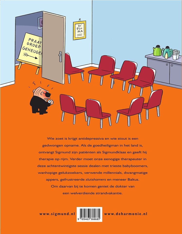 Wie zoet is krijgt antidepressiva en wie stout is een gedwongen opname. Als de goedheiligman in het land is, ontvangt Sigmund zijn patiënten als Sigmundklaas en geeft hij therapie op rijm. Verder moet onze eenogige therapeuter in deze achtentwintigste sessie dealen met trieste babyboomers, wanhopige gelukzoekers, verwende millennials, dwangmatige appers, gefrustreerde slutshamers en meneer Baltus. Om daarvan bij te komen geniet de dokter van een welverdiende strandvakantie.