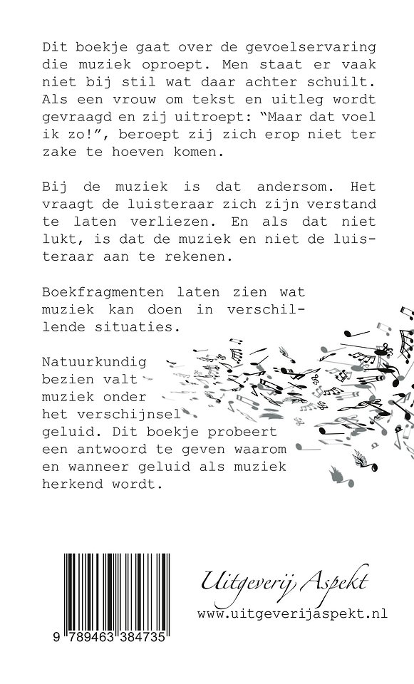 Dit boekje gaat over de gevoelservaring die muziek oproept. Men staat er vaak niet bij stil wat daar achter schuilt. Als een vrouw om tekst en uitleg wordt gevraagd en zij uitroept: “Maar dat voel ik zo!”, beroept zij zich erop niet ter zake te hoeven komen.