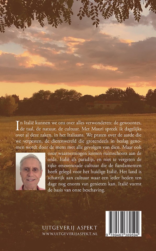 In Italië kunnen we ons over alles verwonderen: de gewoontes, de taal, de natuur, de cultuur. Met Mauri spreek ik dagelijks over al deze zaken, in het Italiaans. We praten over de aarde die we verpesten, de dierenwereld die grotendeels in beslag genomen wordt door de mens met alle gevolgen van dien. Maar ook onze waarnemingen komen ruimschoots aan de orde. Italië als paradijs, en niet te vergeten de rijke eeuwenoude cultuur die de fundamenten heeft gelegd voor het huidige Italië. Het land is schatrijk aan cultuur waar een ieder heden ten