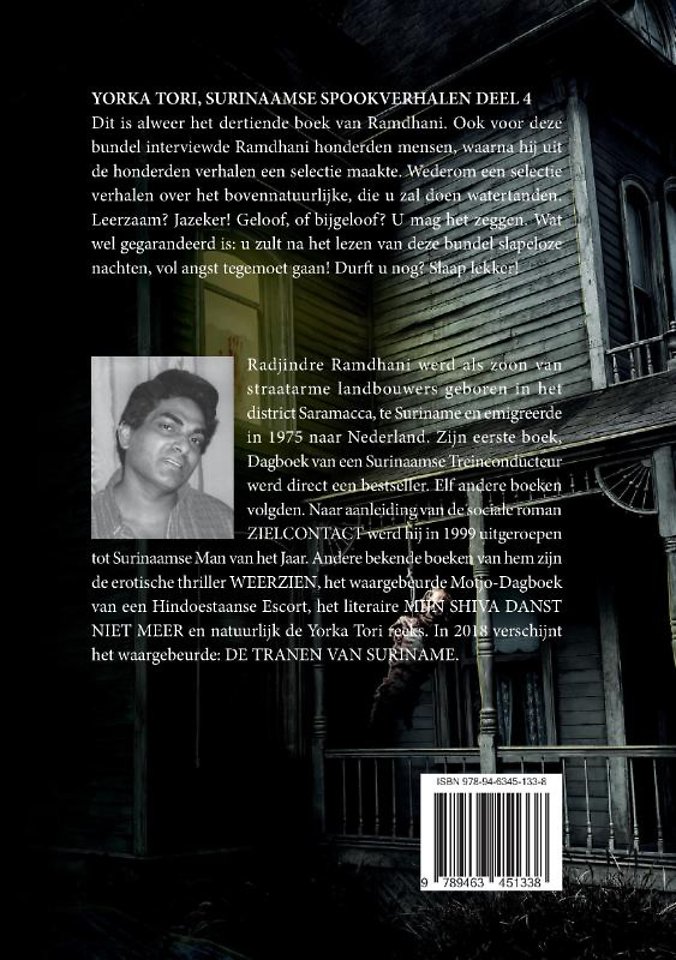 Radjindre Ramdhani werd als zoon van straatarme landbouwers geboren in het district Saramacca, te Suriname en emigreerde in 1975 naar Nederland. Zijn eerste boek, Dagboek van een Surinaamse Treinconducteur werd direct een bestseller. Elf andere boeken volgden. Naar aanleiding van de sociale roman ZIELCONTACT werd hij in 1999 uitgeroepen tot Surinaamse Man van het Jaar. Andere bekende boeken van hem zijn de erotische thriller WEERZIEN, het waargebeurde Motjo-Dagboek van een Hindoestaanse Escort, het literaire MIJN SHIVA DANST NIET MEER en natuurlijk de Yorka Tori reeks. In 2018 verschijnt het waargebeurde: DE TRANEN VAN SURINAME.