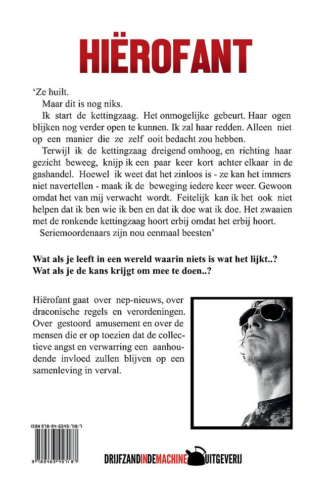 Seriemoordenaars zijn nou eenmaal beesten’ Hiërofant gaat over nep-nieuws, over draconische regels en verordeningen. Over gestoord amusement en over de mensen die er op toezien dat de collectieve angst en verwarring een aanhoudende invloed zullen blijven op een samenleving in verval.