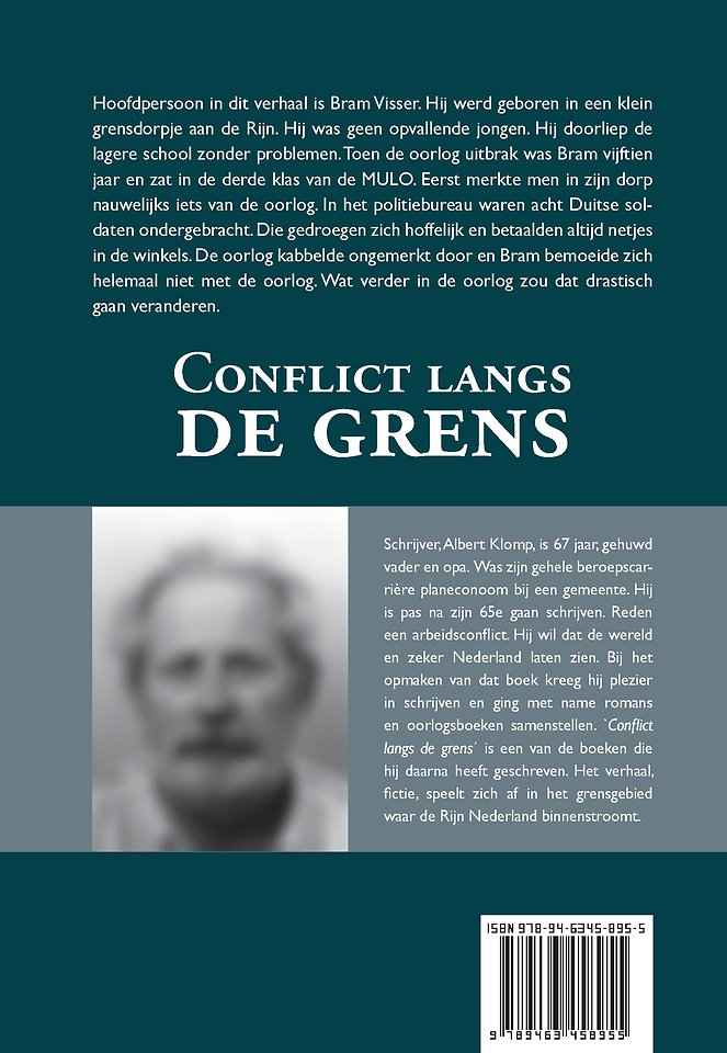 Schrijver, Albert Klomp, is 67 jaar, gehuwd vader en opa. Was zijn gehele beroepscarrière planeconoom bij een gemeente. Hij is pas na zijn 65e gaan schrijven. Reden een arbeidsconflict. Hij wil dat de wereld en zeker Nederland laten zien. Bij het opmaken van dat boek kreeg hij plezier in schrijven en ging met name romans en oorlogsboeken samenstellen. 'Conflict langs de grens´ is een van de boeken die hij daarna heeft geschreven. Het verhaal, fictie, speelt zich af in het grensgebied waar de Rijn Nederland binnenstroomt.