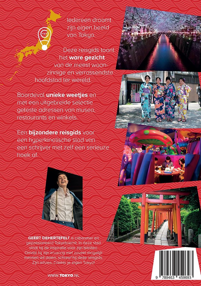 Iedereen droomt zijn eigen beeld van Tokyo. Deze reisgids toont het ware gezicht van de meest waanzinnige en verrassendste hoofdstad ter wereld. Boordevol unieke weetjes en met een uitgebreide selectie geteste adressen van musea, restaurants en winkels. Een bijzondere reisgids voor een hyperkinetische stad van een schrijver met zelf een serieuze hoek af. Geert Dehertefelt is cabaretier en gepassioneerd Tokyotoerist. In deze stad vindt hij de inspiratie voor zijn teksten. Omdat hij zijn ervaring met zoveel mogelijk mensen wil delen, schreef hij in samenwerking met Tokyo.nl deze reisgids. Zijn advies: Creëer je eigen Tokyo!
