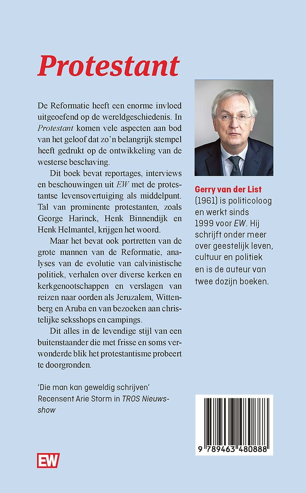 Westerse beschaving. Dit boek is een verzameling van reportages, interviews en beschouwingen uit EW met de protestantse levensovertuiging als middelpunt. Tal van prominente protestanten, zoals George Harinck, Henk Binnendijk en Henk Helmantel, krijgen het woord.