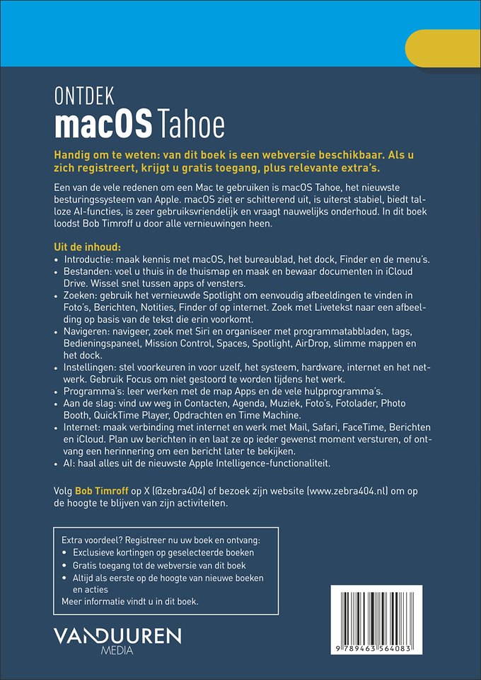 In Ontdek macOS 26 leer je stap voor stap hoe je je Mac slimmer, sneller en persoonlijker maakt met het nieuwe besturingssysteem van Apple. Deze editie zit vol uitleg, tips en voorbeelden waarmee je moeiteloos de nieuwste functies ontdekt en meteen zelf aan de slag gaat.