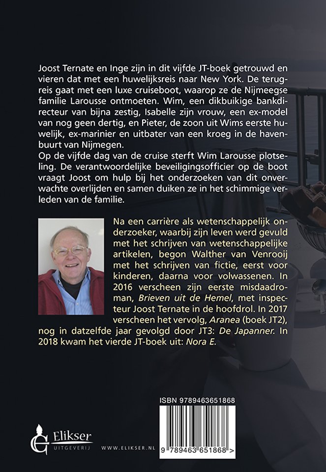 Joost Ternate en Inge zijn in dit vijfde JT-boek getrouwd en vieren dat met een huwelijksreis naar New York. De terugreis gaat met een luxe cruiseboot, waarop ze de Nijmeegse familie Larousse ontmoeten. Wim, een dikbuikige bankdirecteur van bijna zestig, Isabelle zijn vrouw, een ex-model van nog geen dertig, en Pieter, de zoon uit Wims eerste huwelijk, ex-marinier en uitbater van een kroeg in de havenbuurt van Nijmegen.