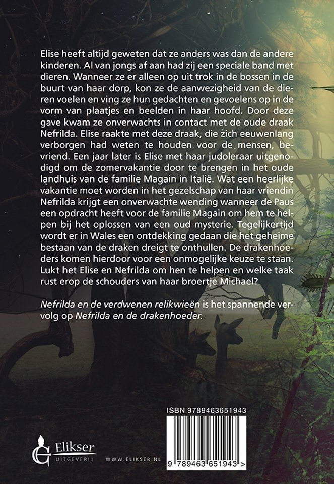 Elise heeft altijd geweten dat ze anders was dan de andere kinderen. Al van jongs af aan had zij een speciale band met dieren. Wanneer ze er alleen op uit trok in de bossen in de buurt van haar dorp, kon ze de aanwezigheid van de dieren voelen en ving ze hun gedachten en gevoelens op in de vorm van plaatjes en beelden in haar hoofd. Door deze gave kwam ze onverwachts in contact met de oude draak Nefrilda. Elise raakte met deze draak, die zich eeuwenlang verborgen had weten te houden voor de mensen, bevriend.