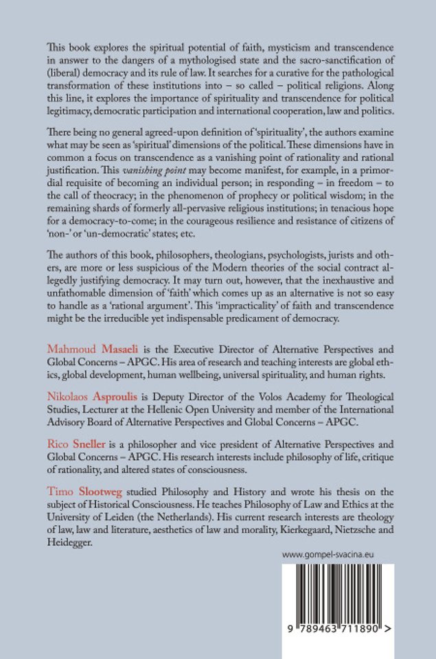 This book explores the spiritual potential of faith, mysticism and transcendence in answer to the dangers of a mythologised state and the sacro-sanctification of (liberal) democracy and its rule of law. It searches for a curative for the pathological transformation of these institutions into – so called – political religions. Along this line, it explores the importance of spirituality and transcendence for political legitimacy, democratic participation and international cooperation, law and politics.