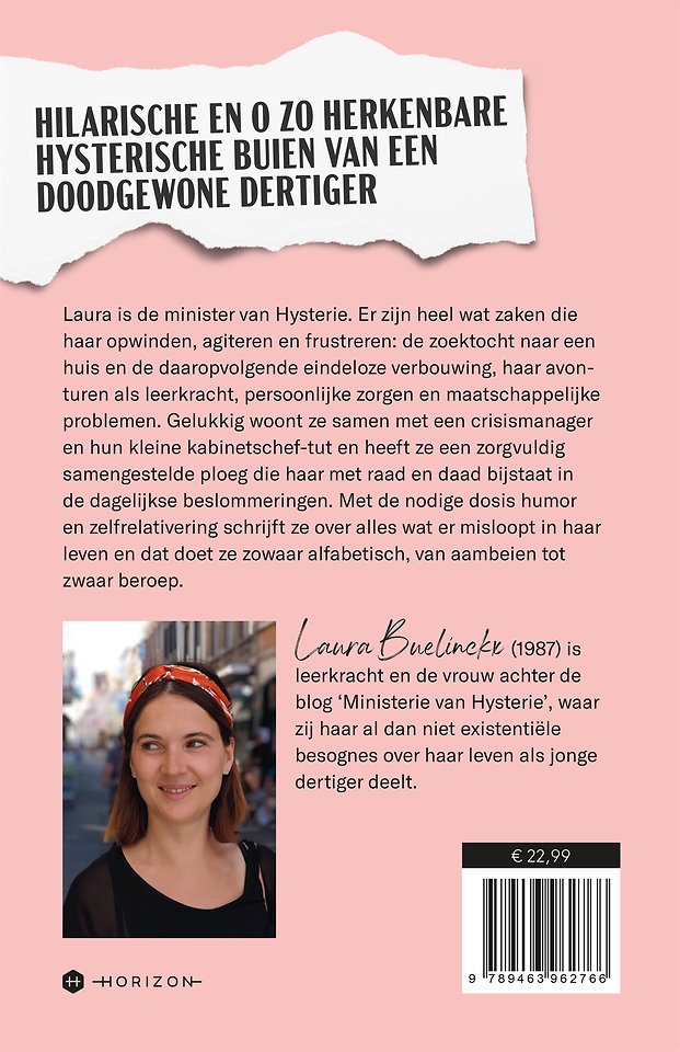 Laura is de minister van Hysterie. Er zijn heel wat zaken die haar opwinden, agiteren en frustreren: haar avonturen als leerkracht, de zoektocht naar een huis en de daaropvolgende verbouwing, persoonlijke zorgen en maatschappelijke problemen. Gelukkig woont ze samen met een crisismanager en haar kleine kabinetschef-tut en heeft ze een zorgvuldig samengestelde ploeg die haar met raad en daad bijstaat in de dagelijkse beslommeringen. Met de nodige dosis zelfrelativering schrijft ze over alles wat er misloopt in het leven van een doordeweekse dertiger.