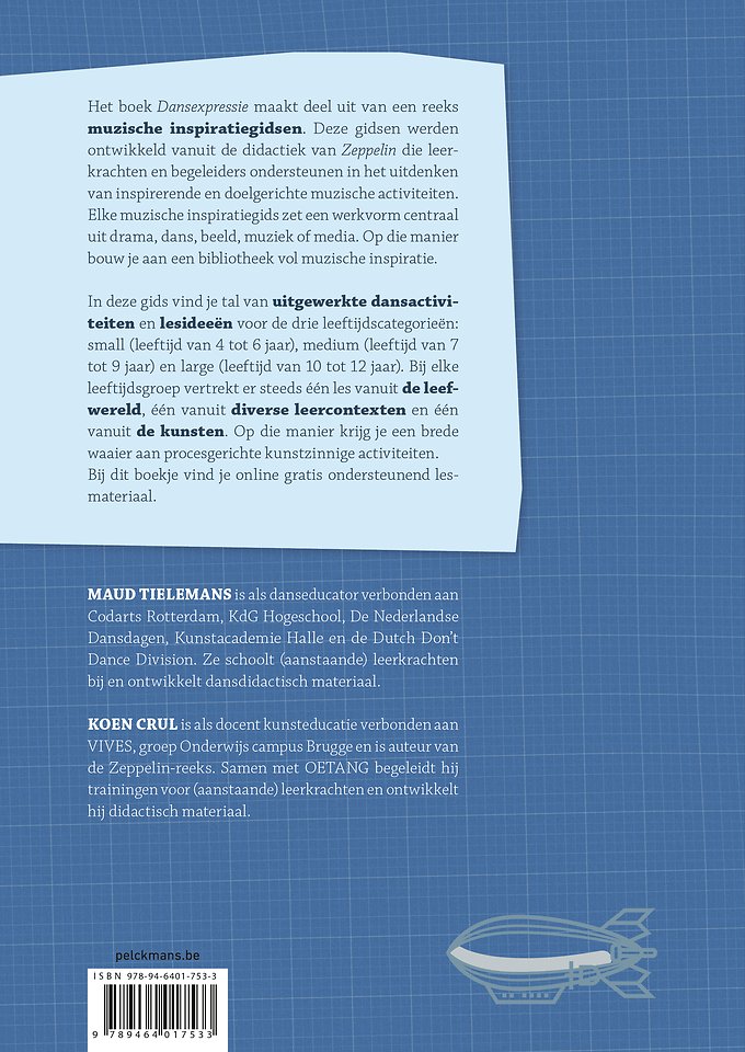 Het boek Dansexpressie maakt deel uit van een reeks muzische inspiratiegidsen. Deze gidsen werden ontwikkeld vanuit de didactiek van Zeppelin die leerkrachten en begeleiders ondersteunt in het uitdenken van inspirerende en doelgerichte muzische activiteiten. Elke muzische inspiratiegids zet een werkvorm centraal uit drama, dans, beeld, muziek of media. Op die manier bouw je aan een bibliotheek vol muzische inspiratie.