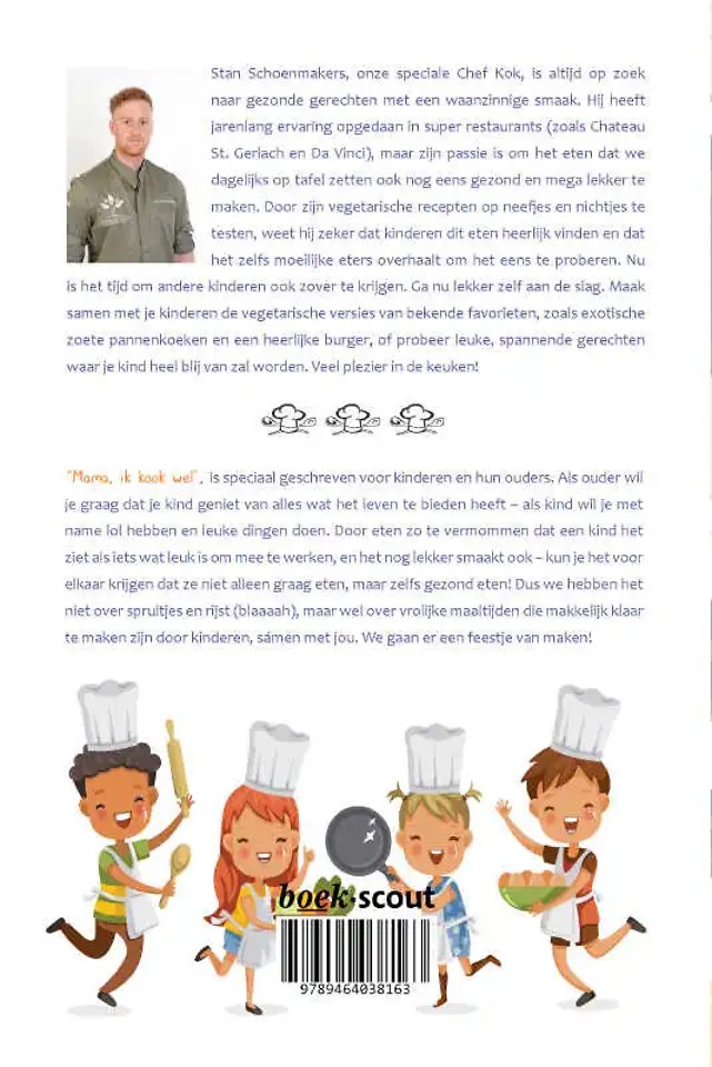 “Mama, ik kook wel”, is speciaal geschreven voor kinderen en hun ouders. Als ouder wil je graag dat je kind geniet van alles wat het leven te bieden heeft – als kind wil je met name lol hebben en leuke dingen doen. Door eten zo te vermommen dat een kind het ziet als iets wat leuk is om mee te werken, en het nog lekker smaakt ook – kun je het voor elkaar krijgen dat ze niet alleen graag eten, maar zelfs gezond eten! Dus we hebben het niet over spruitjes en rijst (blaaaah), maar wel over vrolijke maaltijden die makkelijk klaar te maken zijn door kinderen, sámen met jou. We gaan er een feestje van maken!