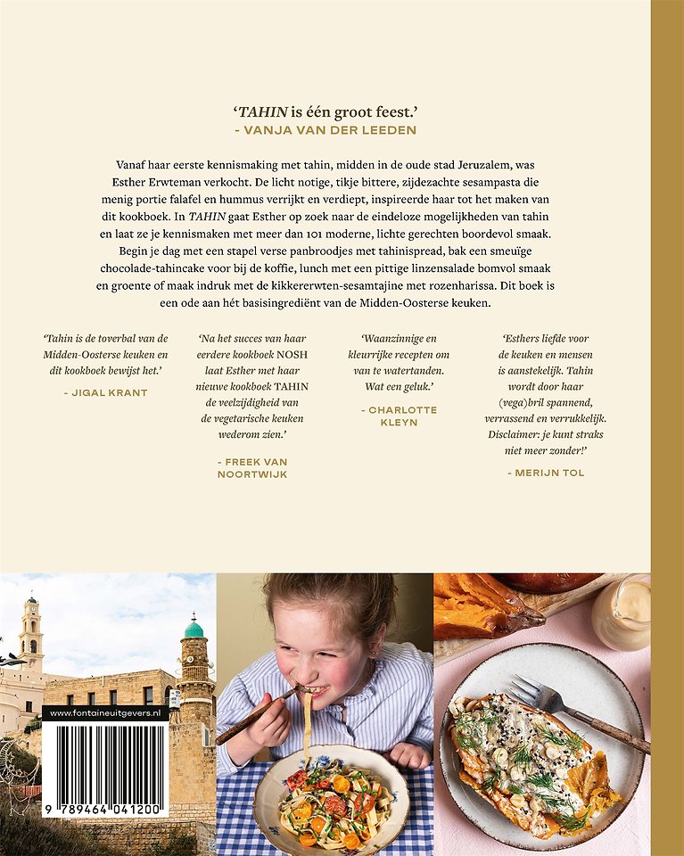 'De beste bijrol in de Midden-Oosterse keuken gaat naar... tahin! Ik ben er dol op. En als de gulle hand van Esther aan de gang gaat met deze verrukkelijke sesamsaus kun je je verheugen op romige shakes, weelderige dressings en notige cakes. TAHIN is één groot feest.' Vanja van der Leeden