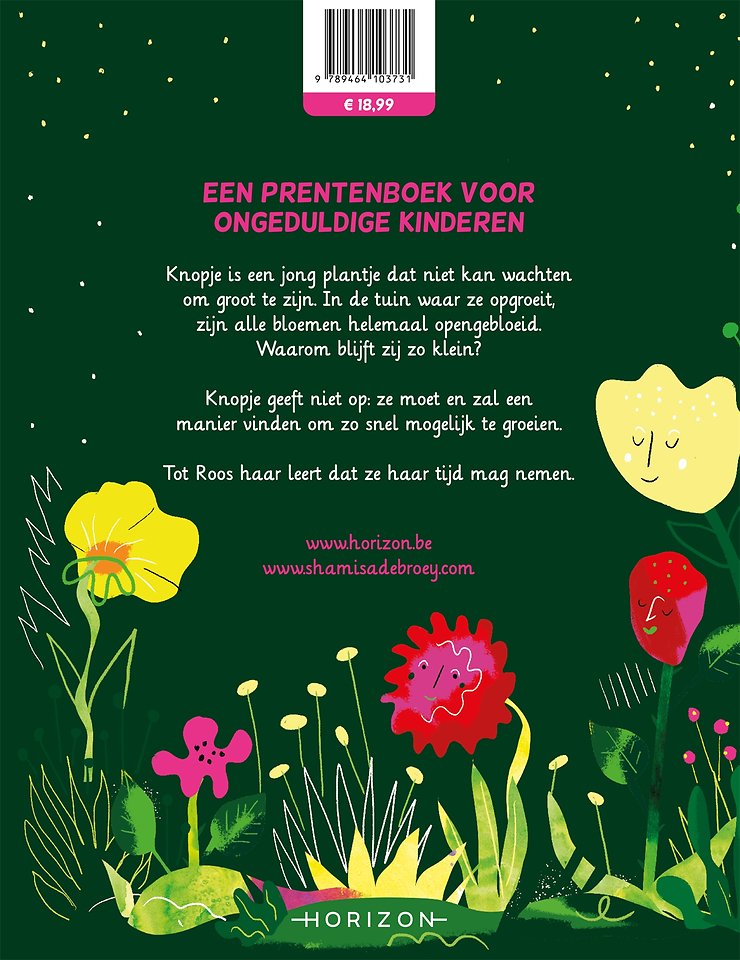 Knopje is een jong plantje dat niet kan wachten om groot te zijn. In de Engelse tuin waarin ze opgroeit, zijn alle bloemen helemaal opengebloeid. De rozenstruiken lachen haar uit, de vergeet-me-nietjes doen alsof ze niet bestaat en de viooltjes plagen haar. Wat is ze toch een klein, onbenullig ding.