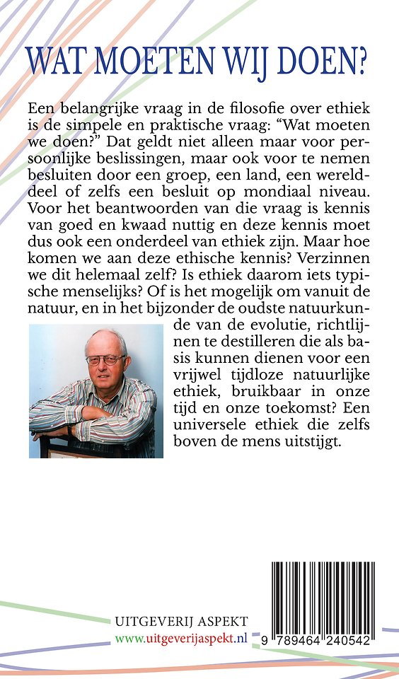 van goed en kwaad nuttig en deze kennis moet dus ook een onderdeel van ethiek zijn. Maar hoe komen we aan deze ethische kennis? Verzinnen we dit helemaal zelf? Is ethiek daarom iets typische menselijks? Of is het mogelijk om vanuit de natuur, en in het bijzonder de oudste natuurkunde van de evolutie, richtlijnen te destilleren die als basis kunnen dienen voor een vrijwel tijdloze natuurlijke ethiek, bruikbaar in onze tijd en onze toekomst?