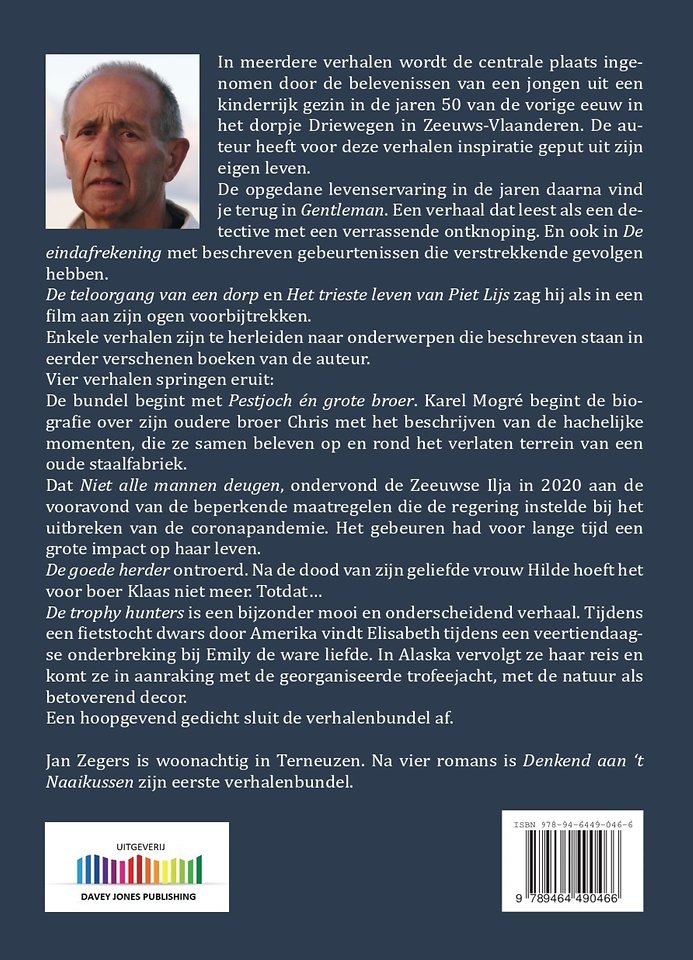 Jan Zegers is woonachtig in Terneuzen. Na vier romans is Denkend aan ‘t Naaikussen zijn eerste verhalenbundel.