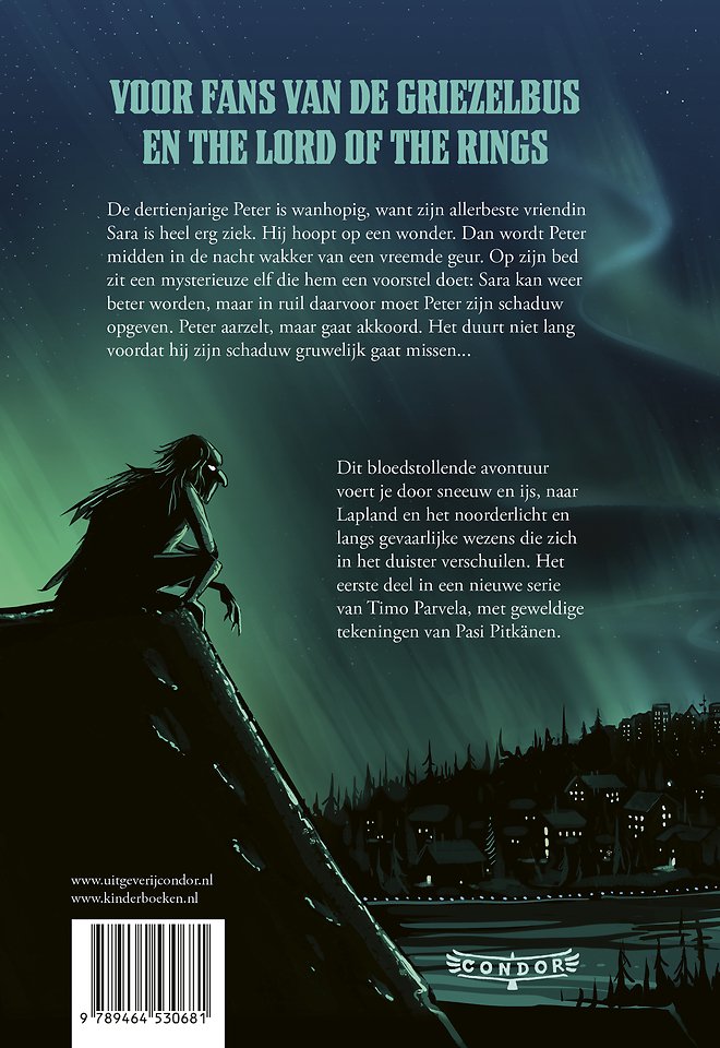 Dit bloedstollende avontuur voert je door sneeuw en ijs, naar Lapland en het noorderlicht en langs gevaarlijke wezens die zich in het duister verschuilen. Het eerste deel in een nieuwe serie van Timo Parvela, met geweldige tekeningen van Pasi Pitkänen.