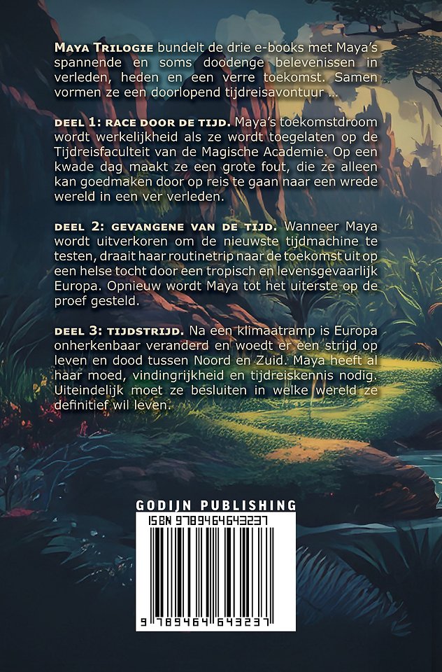 Maya Trilogie bundelt de drie e-books met Maya’s spannende en soms doodenge belevenissen in verleden, heden en een verre toekomst. Samen vormen ze een doorlopend tijdreisavontuur …