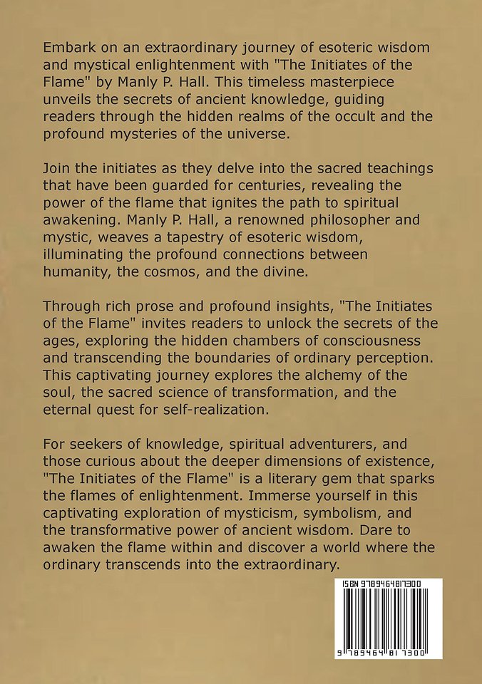 Embark on an extraordinary journey of esoteric wisdom and mystical enlightenment with "The Initiates of the Flame" by Manly P. Hall. This timeless masterpiece unveils the secrets of ancient knowledge, guiding readers through the hidden realms of the occult and the profound mysteries of the universe.
