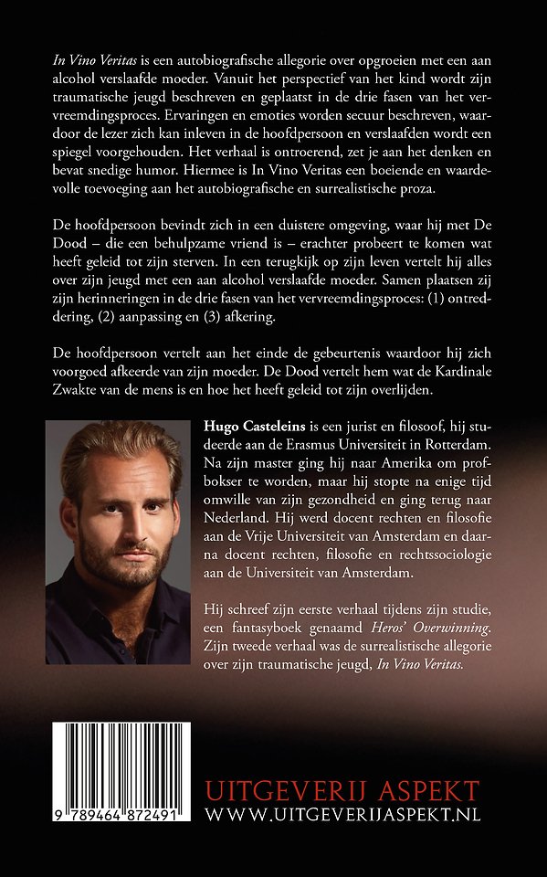 In Vino Veritas is een autobiografische allegorie over opgroeien met een aan alcohol verslaafde moeder. Vanuit het perspectief van het kind wordt zijn traumatische jeugd beschreven en geplaatst in de drie fasen van het ver-vreemdingsproces. Ervaringen en emoties worden secuur beschreven, waardoor de lezer zich kan inleven in de hoofdpersoon en verslaafden wordt een spiegel voorgehouden. Het verhaal is ontroerend, zet je aan het denken en bevat snedige humor.