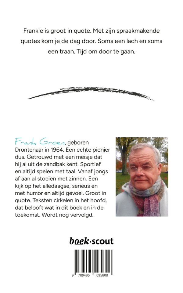 Frankie is groot in quote. Met zijn spraakmakende quotes kom je de dag door. Soms een lach en soms een traan. Tijd om door te gaan.