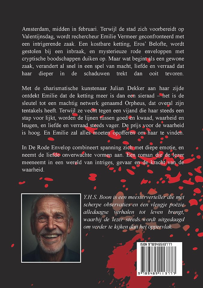 In De Rode Envelop combineert spanning zich met diepe emotie, en neemt de liefde onverwachte vormen aan. Een roman die de lezer meeneemt in een wereld van intriges, gevaar en de kracht van de waarheid.