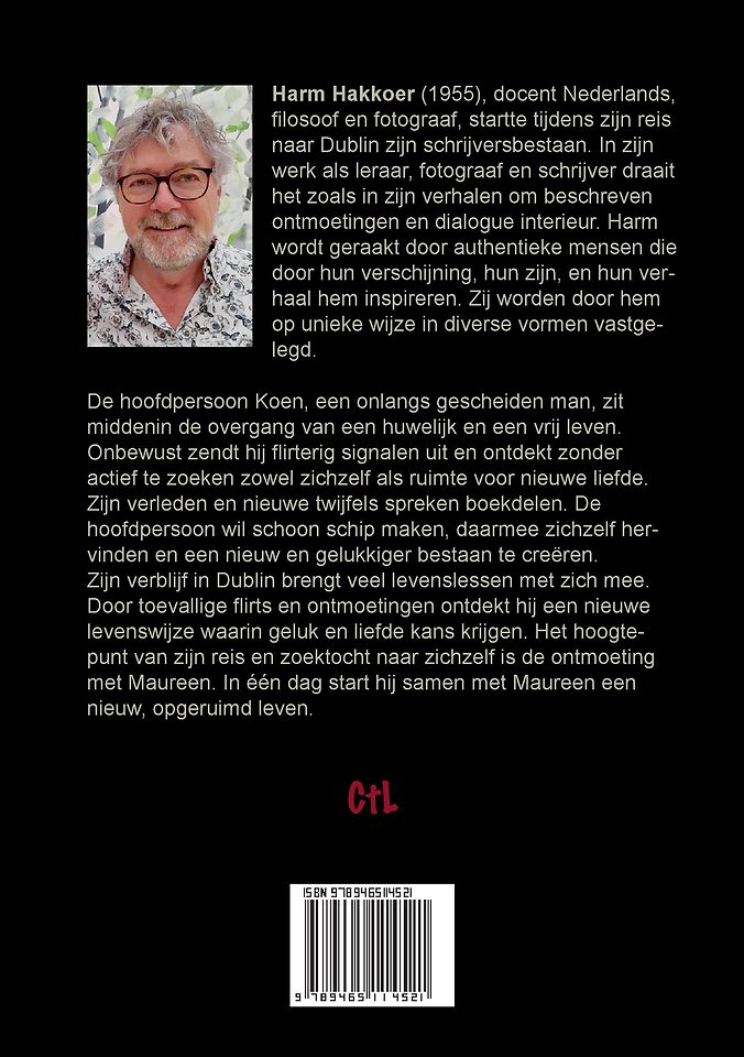 Harm Hakkoer (1955), docent Nederlands, filosoof en fotograaf, startte tijdens zijn reis naar Dublin zijn schrijversbestaan. In zijn werk als leraar, fotograaf en schrijver draait het zoals in zijn verhalen om beschreven ontmoetingen en dialogue interieur. Harm wordt geraakt door authentieke mensen die door hun verschijning, hun zijn, en hun verhaal hem inspireren. Zij worden door hem op unieke wijze in diverse vormen vastgelegd.