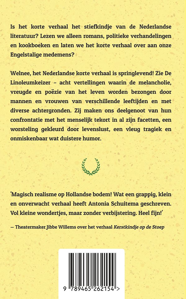Het Nederlandse korte verhaal is springlevend! Zie De Linoleumkeizer – acht vertellingen waarin de melancholie, vreugde en poëzie van het leven worden bezongen door mannen en vrouwen van verschillende leeftijden en met diverse achtergronden.