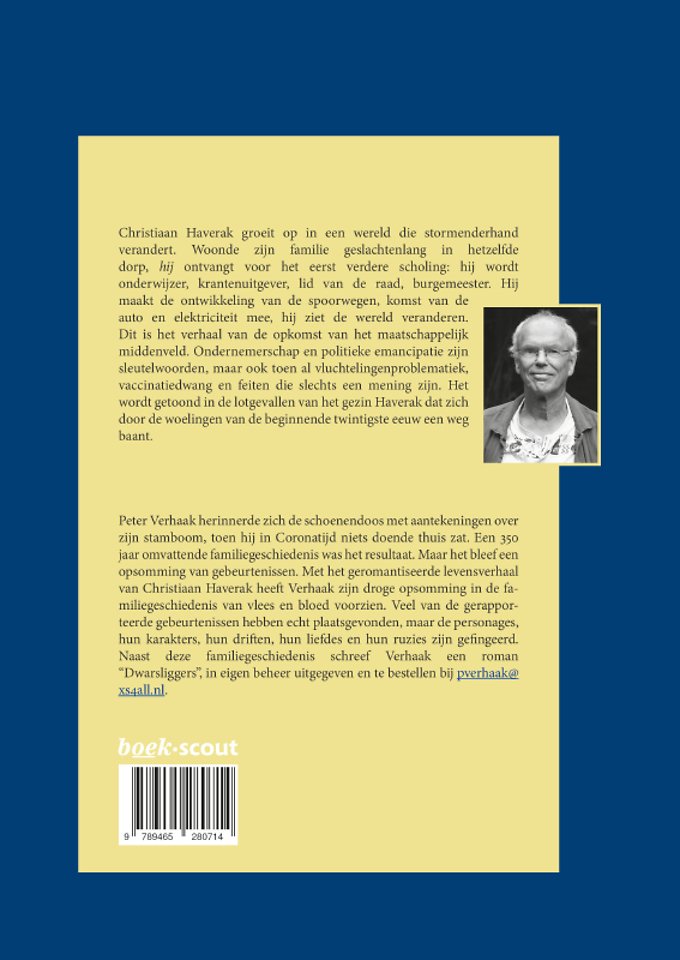 Christiaan Haverak groeit op in een wereld die stormenderhand verandert. Zijn familie woonde geslachtenlang in hetzelfde dorp, Hurwenen in de Bommelerwaard, hij maakt als klein kind de watersnoodramp van 1861 mee. Als eerste in de familie ontvangt hij verdere scholing en gaat naar de kweekschool bij de fraters van Tilburg. Hij verkast naar Zeeuws-Vlaanderen en wordt onderwijzer, krantenuitgever (hij sticht “De Scheldebode en “Zeeuwsche Koerier”) en hij wordt lid van de raad van Sas van Gent, later ook wethouder. Vervolgens is hij van 1901-1917 burgemeester van Beek en Donk. Hij maakt de ontwikkeling van de spoorwegen, komst van de auto en elektriciteit mee, hij ziet de wereld veranderen.
