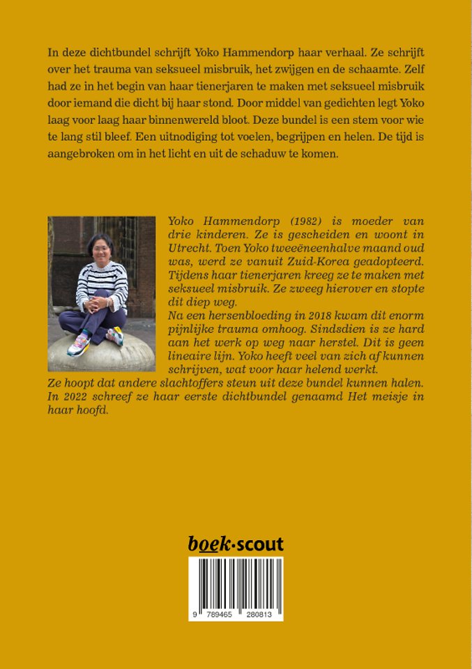 In deze dichtbundel schrijft Yoko Hammendorp haar verhaal. Ze schrijft over het trauma van seksueel misbruik, het zwijgen en de schaamte. Zelf had ze in het begin van haar tienerjaren te maken met seksueel misbruik door iemand die dicht bij haar stond. Door middel van gedichten legt Yoko laag voor laag haar binnenwereld bloot. Deze bundel is een stem voor wie te lang stil bleef. Een uitnodiging tot voelen, begrijpen en helen. De tijd is aangebroken om in het licht en uit de schaduw te komen.