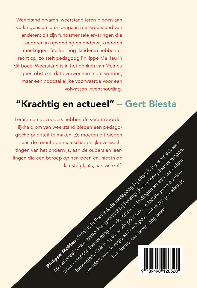 Weerstand ervaren, weerstand leren bieden aan verlangens en leren omgaan met weerstand van anderen: dit zijn fundamentele ervaringen die kinderen in opvoeding en onderwijs moeten meekrijgen. Sterker nog: kinderen hebben er recht op, zo stelt pedagoog Philippe Meirieu in dit boek. Weerstand is in het denken van Meirieu geen obstakel dat overwonnen moet worden, maar een noodzakelijke voorwaarde voor een volwassen levenshouding.